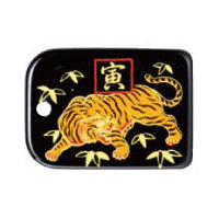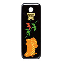 蒔絵根付 十二支長札型・寅 550円(税込)